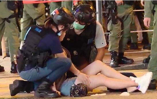 另外,当晚一名男子與一名孕婦在亞皆老街與警員發生衝突,警員施放胡椒噴劑,男子及孕婦均中椒,其中孕婦在混亂中跌倒在地,抱腹痛哭,有女警上前協助。涉事孕婦事後由救護車送院。據悉,該名孕婦懷疑7至8個月,經檢查後證實母子平安。
