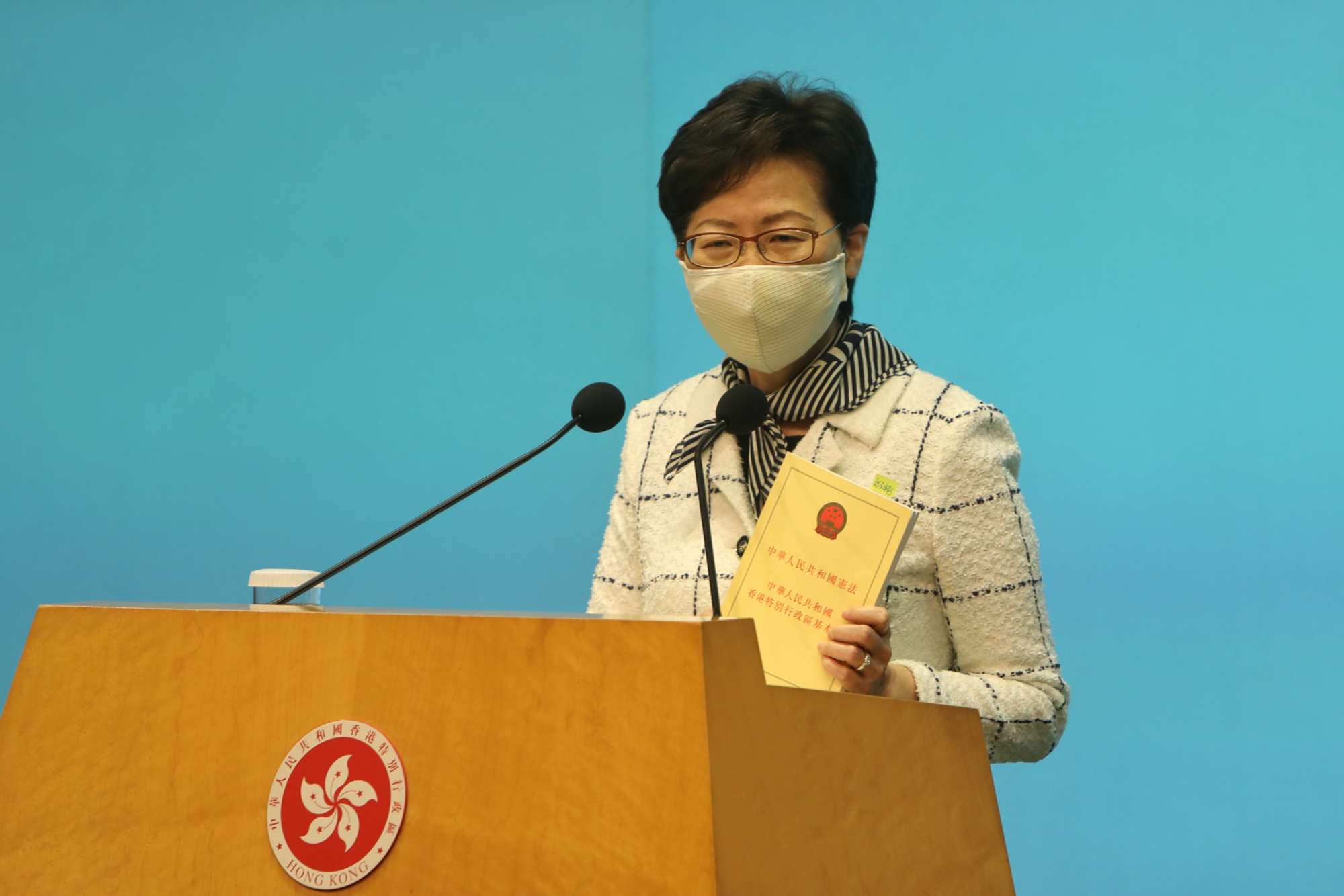 林鄭说,香港的高度自治不是全面自治或與中央分權,而是來自中央授權;行政長官是行政主導的架構,向中央和特區雙重負責,過去有說「三權分立」是指各自分工行駛職權,是各司其職亦可以互相制衡,舉例指司法機構獨立運作,但資源同時受到制約,立法會可以否決政府的任命,但行政長官在特定情況下可解散立法會,而「三權」最終都透過行政長官向中央負責。