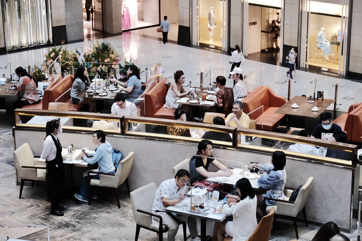 旺角昨日有酒樓午市大批市民飲茶,「搭枱」會以圍板分隔,酒樓亦安排有數名執枱專員,披上彩帶識別。有市民對於放寬至4人同枱感到高興,又希望日後可以放寬到8至12人同枱。餐飲聯業協會會長黃家和表示,食肆可以4人一枱,家庭客會增加,他又期望疫情受控,每枱人數可再放寬至6至8人,配合下月初的中秋節。另在油塘一間家庭遊樂中心,有職員為顧客登記姓名和電話,以便日後或助追蹤確診個案。每架遊戲機之間隔起圍板,不時有職員清潔遊戲機的按鈕和擲彩虹等遊戲設施。