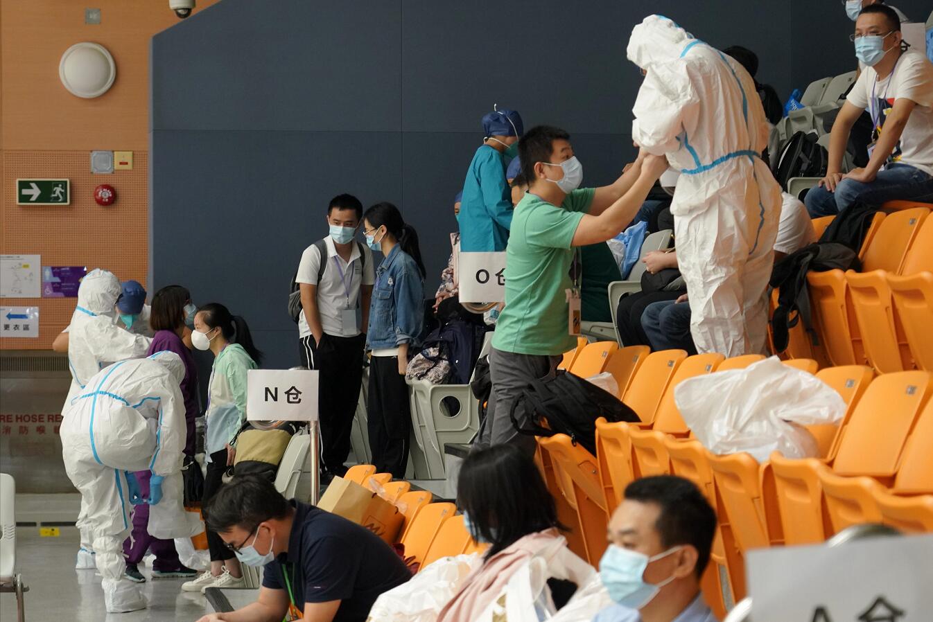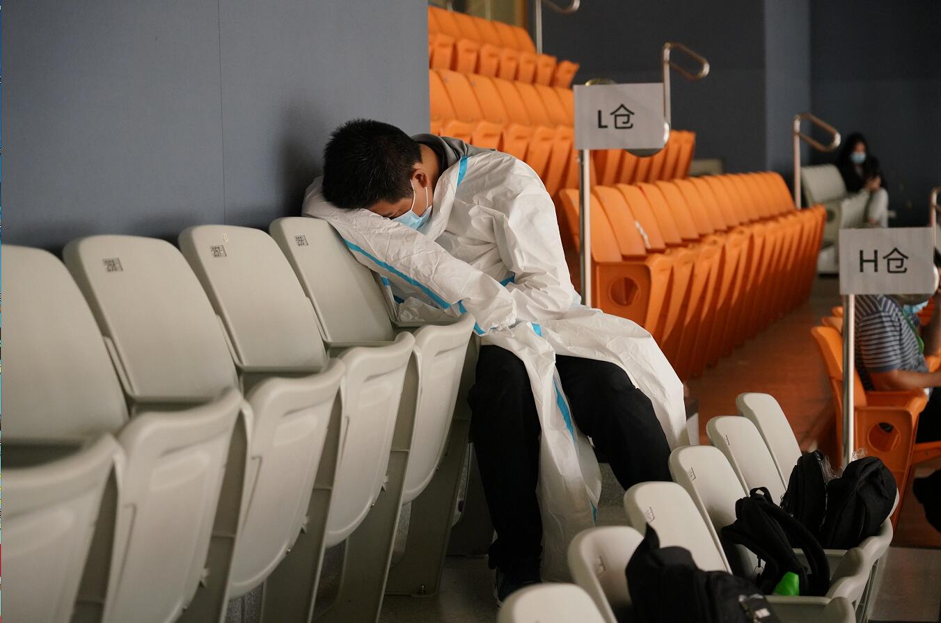 檢測工作繁重,工作人員抽空休息。