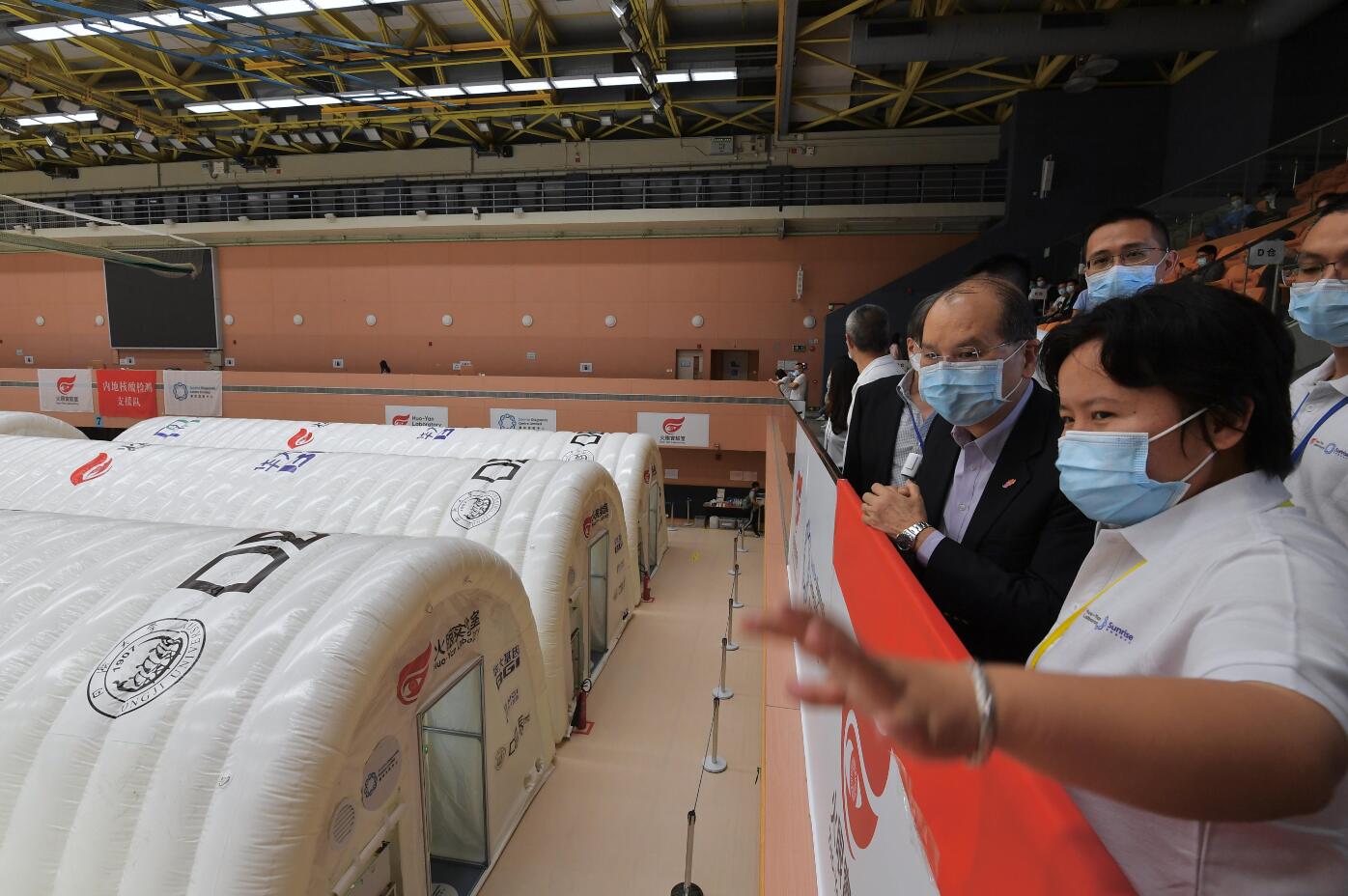 普及社區檢測計劃將於星期一結束,政務司司長張建宗9月12日到設於中西區中山紀念公園體育館的臨時氣膜實驗室,了解實驗室運作情況,並感謝工作人員同心協力,確保市民可在採樣後最短時間內得知檢測結果。此外,華昇診斷中心昨日安排部分內地核酸檢測支援隊成員會見傳媒,他們強調來港隊員全部經過省級、國家級考核,合格後才可工作。