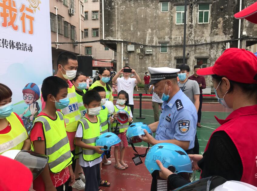活動中,宣傳民警為居民家長小朋友們普及交通安全知識,講解「一盔一帶」騎乘人員規範佩戴安全頭盔、駕乘人員規範使用安全帶等知識。現場還設置了飛行棋安全知識問答、安全你畫我知等遊戲攤位,通過有獎問答環節讓社區小朋友、家長們在參與中學習交通安全知識,為答對題目的小朋友頒發安全頭盔及小禮包。