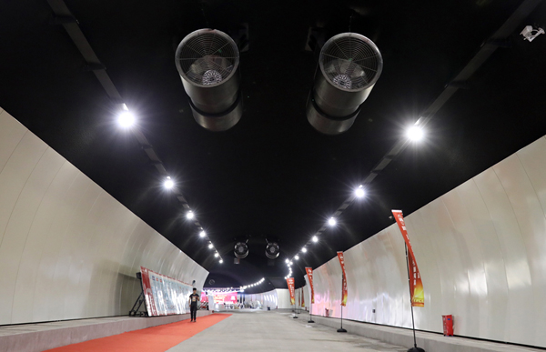 明亮的大橫琴山隧道內。(龍少攝)