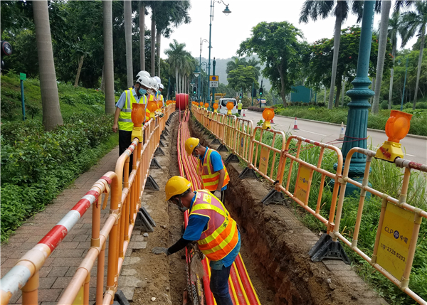 中電工程團隊為大嶼山竹篙灣檢疫中心鋪設地底電纜,連接電力網絡。