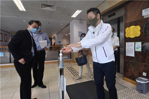 徐英偉在康文署署長劉明光陪同下,瞭解康文署的準備工作、防疫措施和於重開康樂設施所採取的特別措施,包括限制球場/球道逗留人數、暫停開放觀眾席、取消團體作賽,以隔球道方式開放設施。