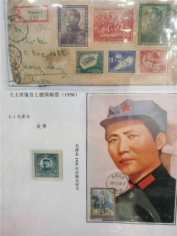 符春曉於2018年出席香港郵學會郵票展時,把自己的珍藏展出,包括一批1950年德國出品的毛澤東郵品。資料圖片