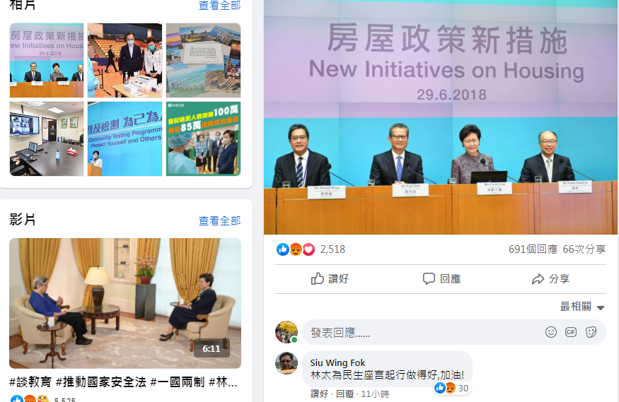 政府推動「明日大嶼」計劃引起社會部分人反對,行政长官林鄭月娥16日晚在facebook專頁談及房屋政策时,呼籲「社會大眾支持政府多管齊下增加可建屋的土地,包括在維港以外填海開拓新土地」,但未有提及「明日大嶼」。