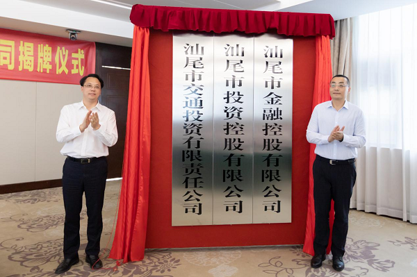9月17日,汕尾市投資控股有限公司、汕尾市交通投資有限責任公司、汕尾市金融控股有限公司(下稱「市投控公司」「市交投公司」「市金投公司」)三大市屬國有企業和汕尾市產業發展投資基金管理有限公司舉行揭牌儀式。汕尾市委書記張曉強,市長逯峰,市領導葉健德、林少文,深圳市國資委副主任葉新明、深圳市鯤鵬股權投資管理有限公司董事長彭鴻林、總裁張靜出席儀式。