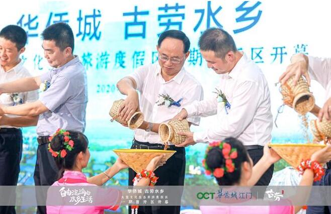 9月25日,大型文化生態旅遊度假區華僑城古勞水鄉一期首開區啟動儀式隆重舉行。江門市委書記林應武、副市長王長青,鶴山市領導林賢進、聶加偉、馮細就、馮偉華以及華僑城集團黨委常委、副總經理張立勇等出席啟幕儀式。與會嘉賓用「撒老糠、入河道」的方式,重現700年古勞圍墩依水勢地形修築堤圍的古勞智慧。