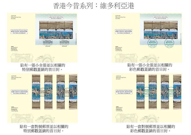 香港郵政明日(29日)發行以「香港今昔系列‧維多利亞港」為主題的特別郵票及相關集郵品(包括首日封、郵票、小全張、連票、套摺、已蓋銷首日封及郵資已付圖片卡。)