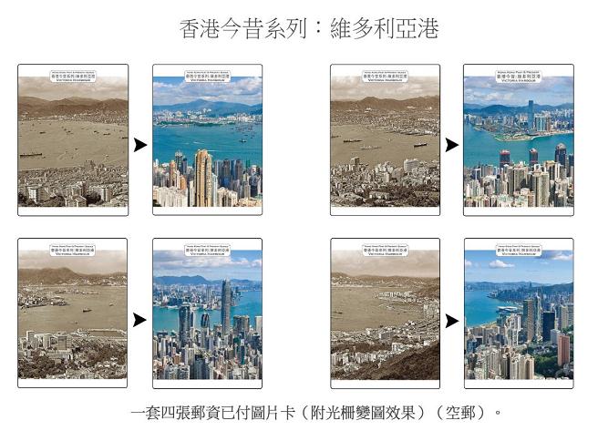 郵資已付圖片卡採用了光柵技術印製,利用變圖效果展示不同年代的維港。只要將一套4張的圖片卡並列觀賞,便可飽覽維港全景。