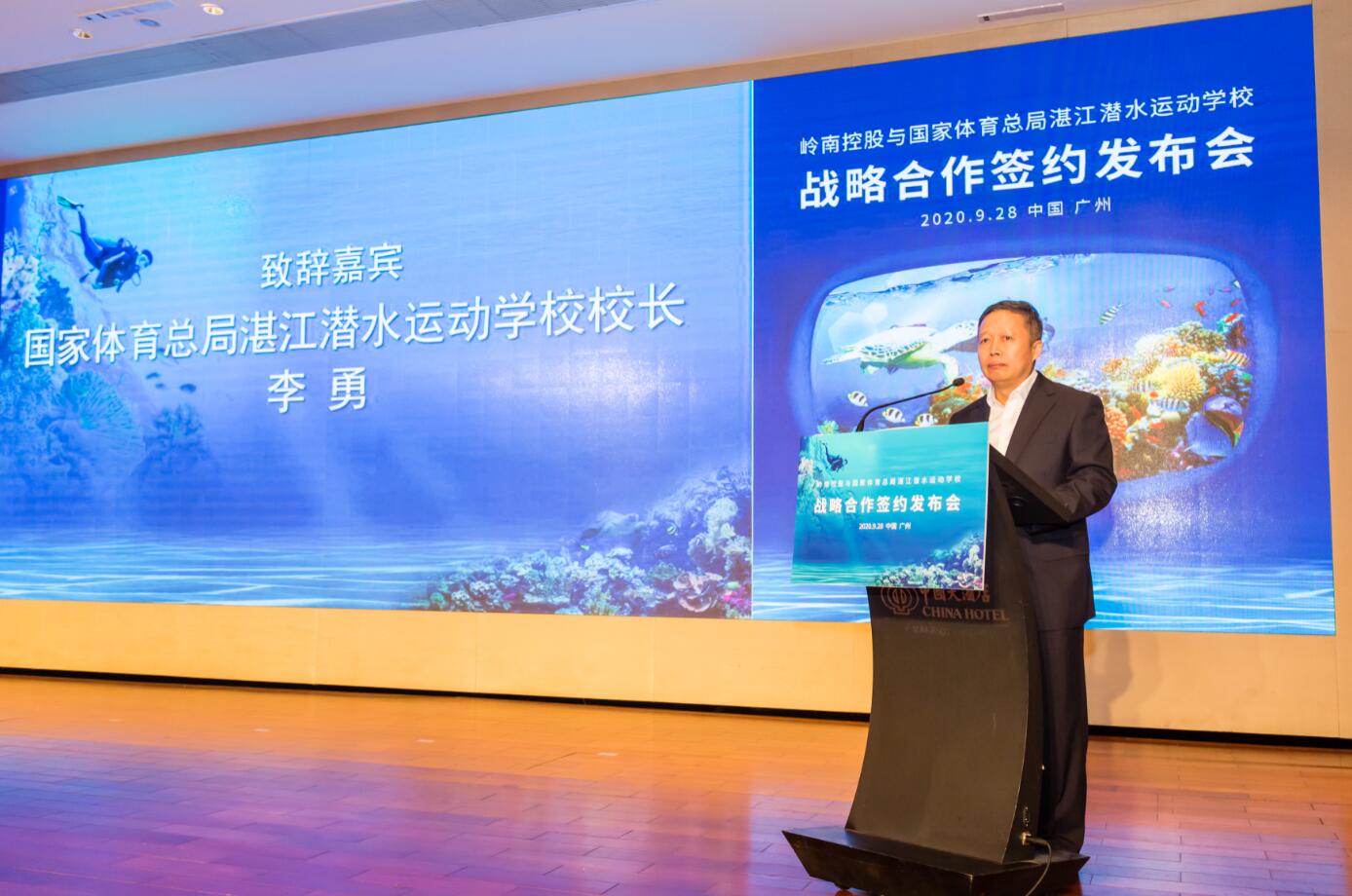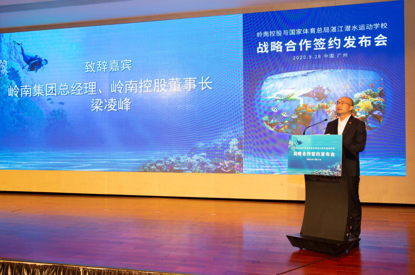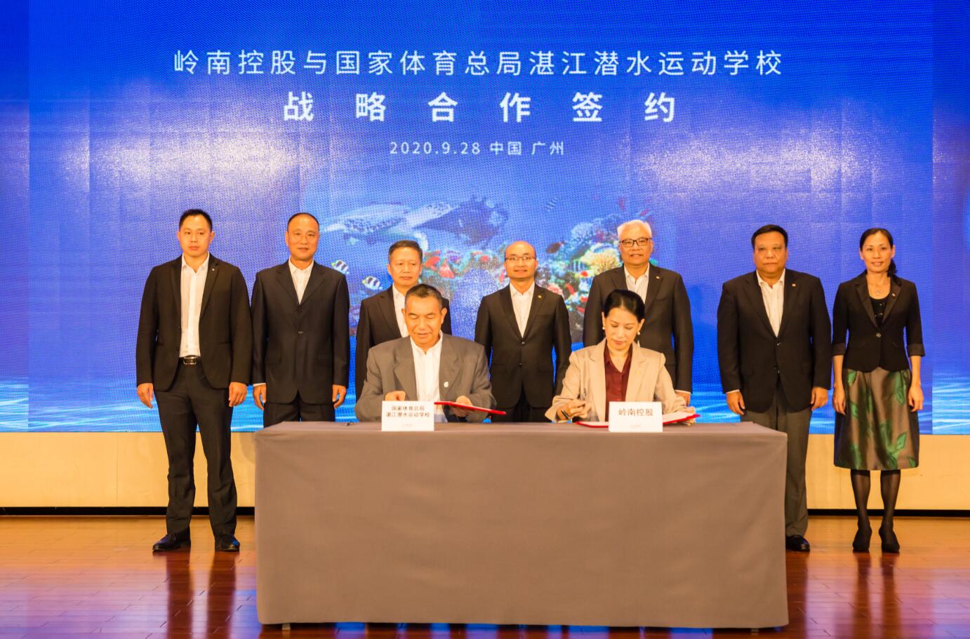 9月28日,國家體育總局湛江潛水運動學校與廣州嶺南集團控股股份有限公司(簡稱「嶺南控股」)聯合舉辦戰略合作簽約發佈會,雙方簽訂《戰略合作框架協議書》,共同就推動體育旅遊事業發展、促進後疫情時代「體育+旅遊」消費新業態發展,開展長期戰略合作。