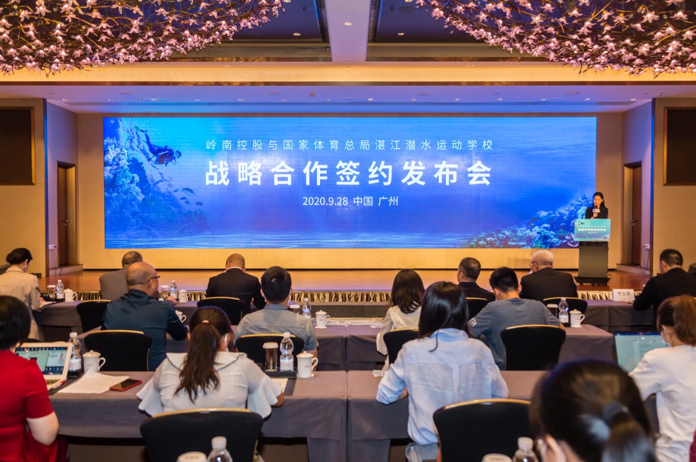 國家體育總局湛江潛水運動學校與廣州嶺南集團控股股份有限公司戰略合作簽約發佈會現場