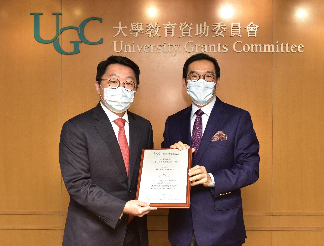 大學教育資助委員會主席唐家成頒發2020年教資會傑出教學獎(新晉教學人員組別)予李乘雨。