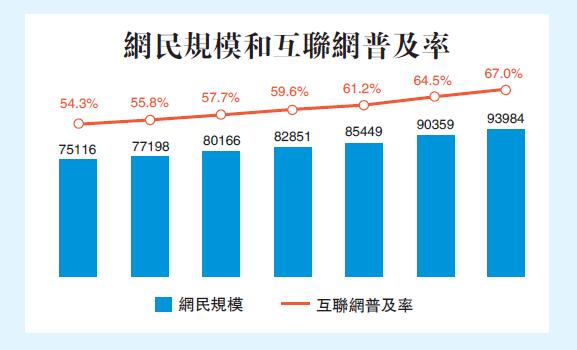 中國互聯網絡信息中心29日發布的第46次《中國互聯網絡發展狀況統計報告》顯示,截至2020年6月,中國網民規模達9.40億,互聯網普及率達67.0%;手機網民規模達9.32億,網民使用手機上網的比例達99.2%。2020年上半年增長最快的個人互聯網應用是電商直播,觀看人次超過500億。