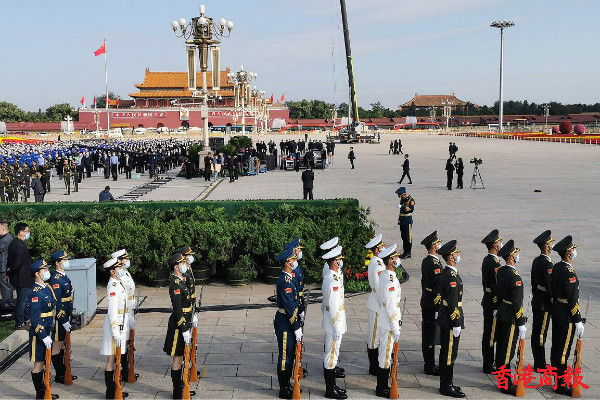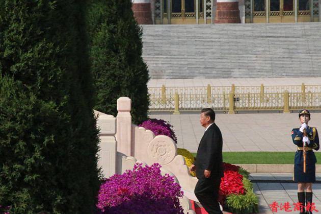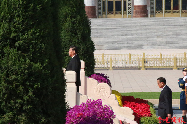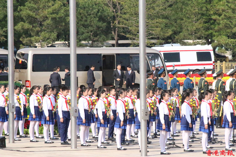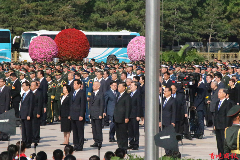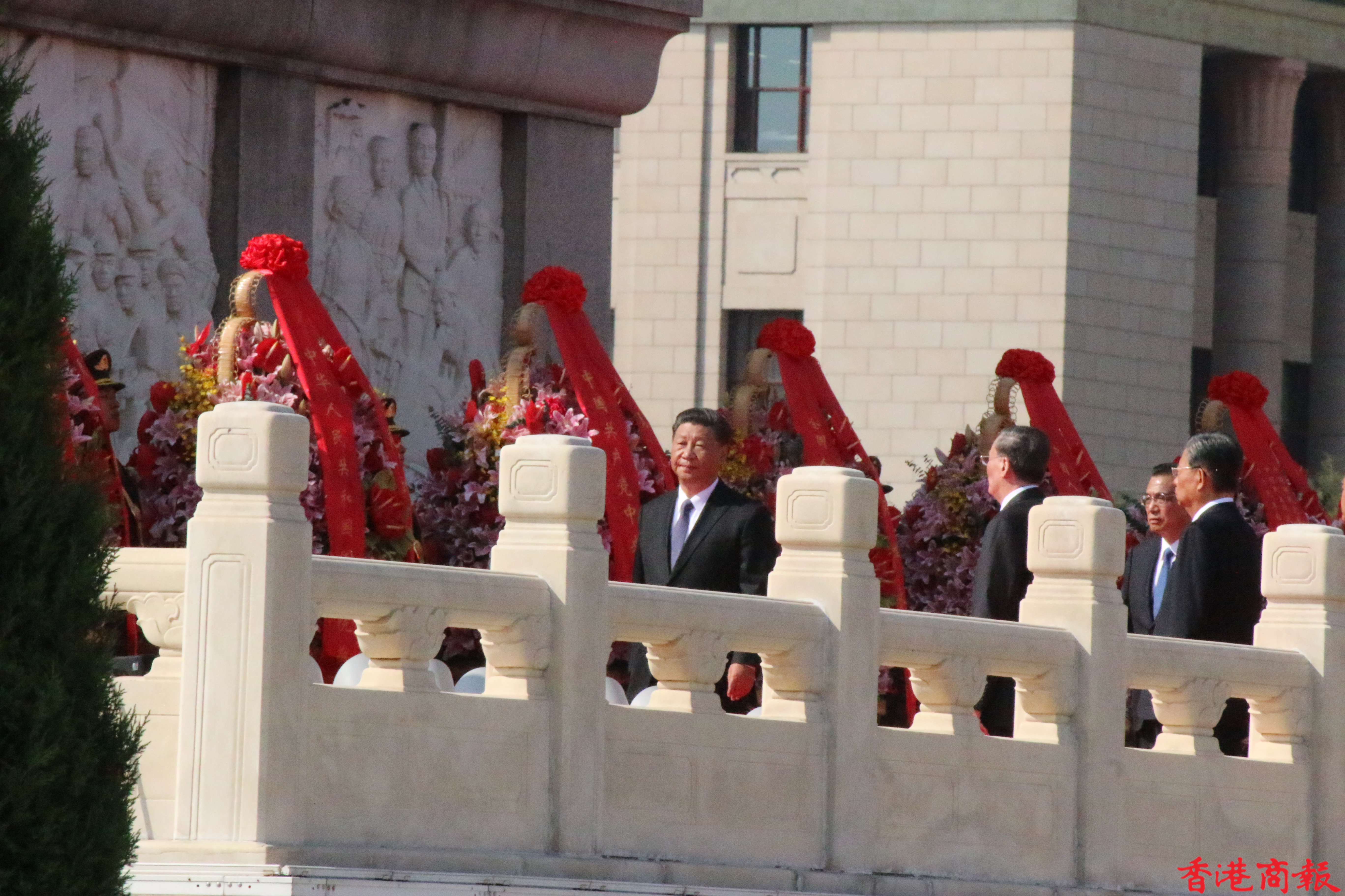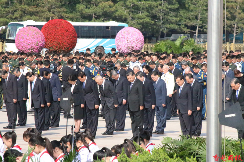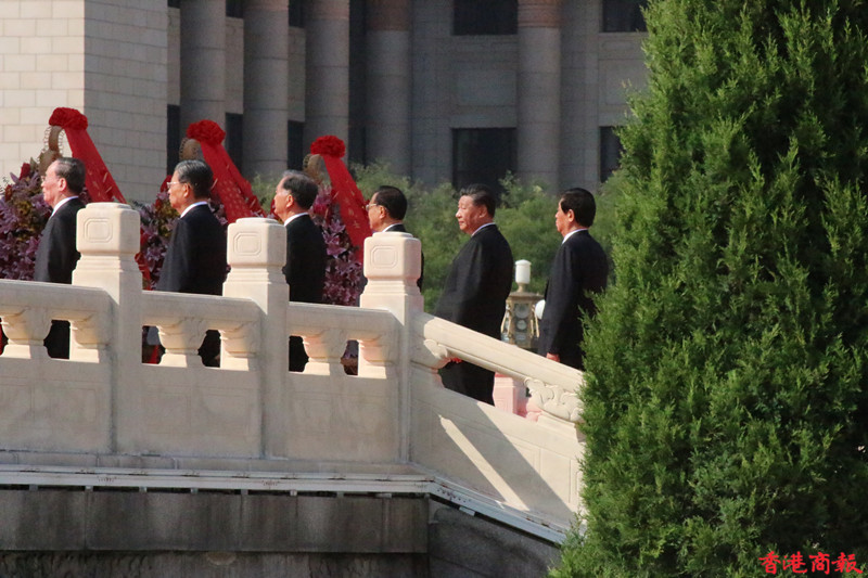 臨近10時,習近平、李克強、栗戰書、汪洋、王滬寧、趙樂際、韓正、王岐山等黨和國家領導人來到天安門廣場,出席向人民英雄敬獻花籃儀式。
