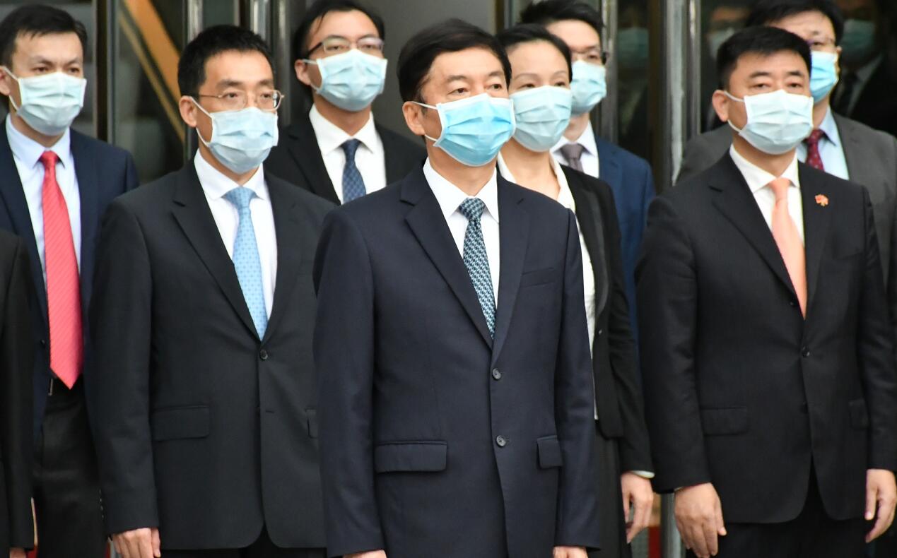 今日是中華人民共和國成立71周年。中聯辦今早舉行國慶升旗儀式,出席的有中聯辦多位領導,包括中聯辦主任駱惠寧,副主任陳冬、仇鴻、譚鐵牛、何靖等。