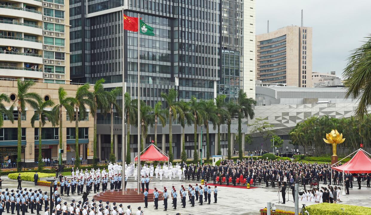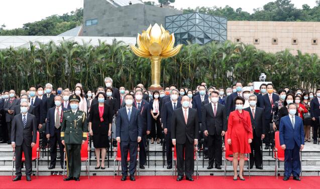 澳门特区政府今日(1日)举行庆祝中华人民共和国成立71周年升旗仪式,行政长官贺一诚、中央驻澳官员、解放军驻澳部队军官、特区立法和司法机关负责人、行政会委员、立法议员、特区政府官员、澳区人大代表、政协委员及各界人士等约550人出席。