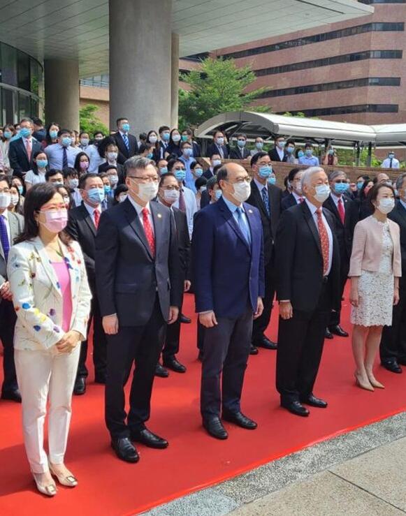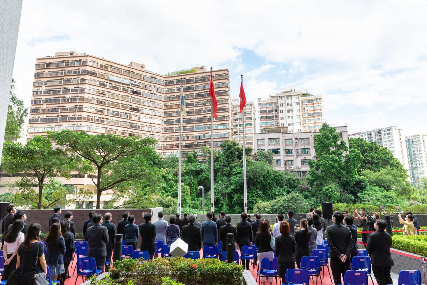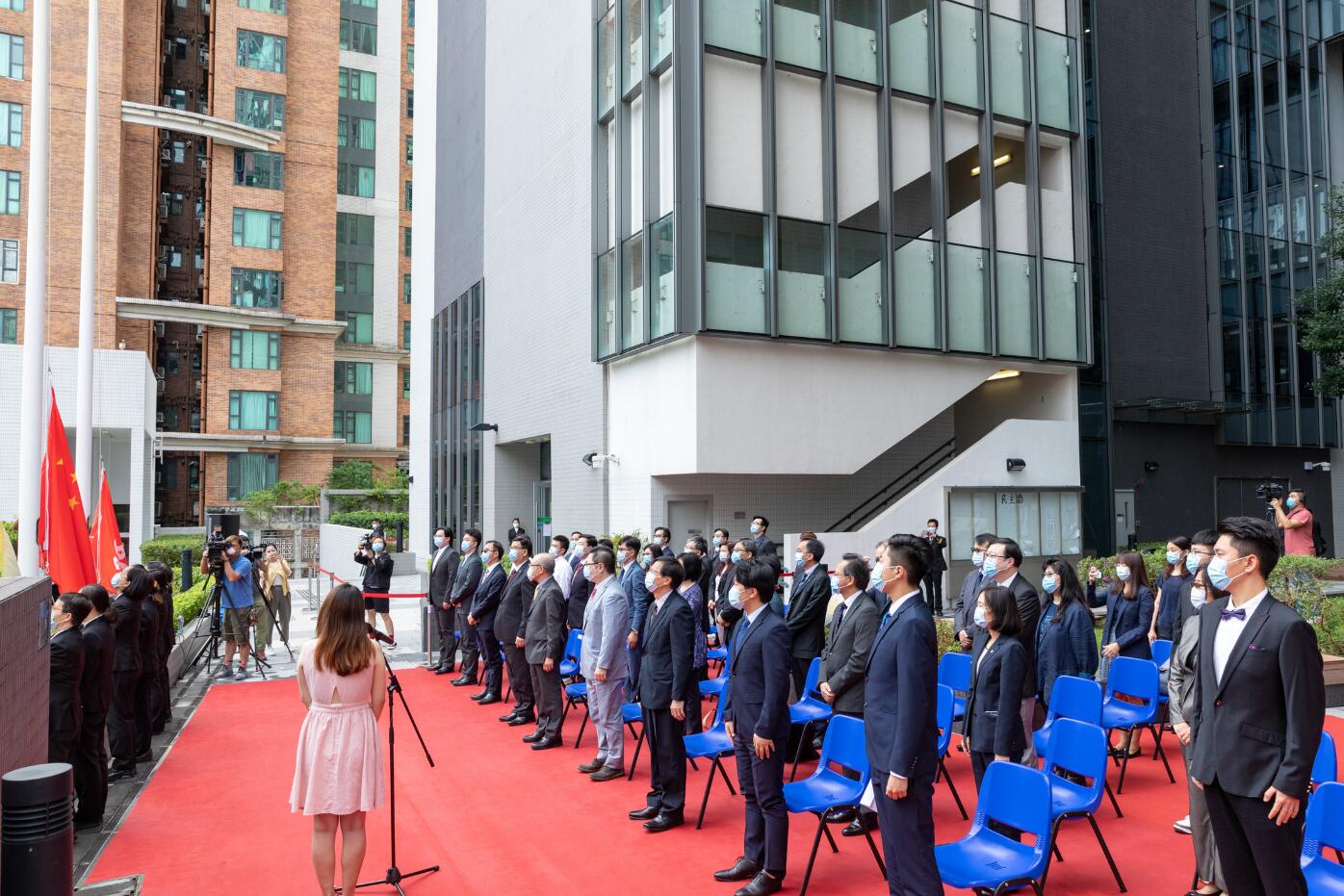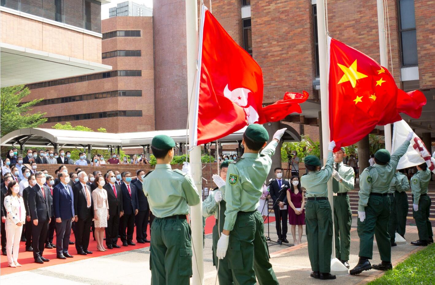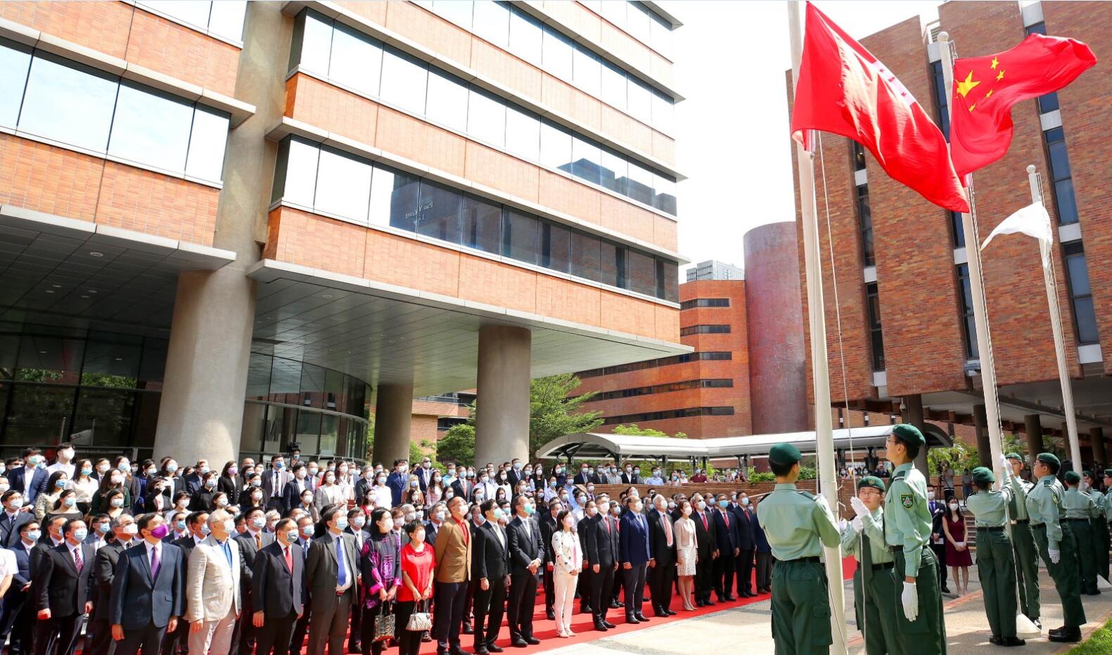 今日是祖国71周年国庆,香港各處均有慶祝活動,香港理工大学、演艺学院、公开大学、浸会大学等多个高校亦举行升旗儀式贺国庆。