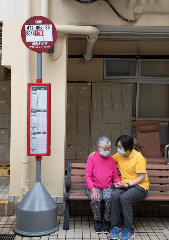 九巴向明愛利孝和護理安老院捐贈兩個巴士站牌,有助長者治療認知障礙症,以及防止長者走失。