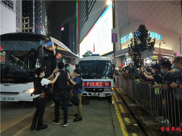 中秋佳節入夜後,仍有大批人士在銅鑼灣聚集,不時叫囂,辱駡和挑釁在場執法的警員。警方在多處地方拉起封鎖線,並截查個別人士,最後拘捕數人,用索帶反轉綑手,並帶上大巴車帶返警署接受調查,其中包括一老一年輕的姨侄,二人身材肥胖,經常在示威現場挑事。