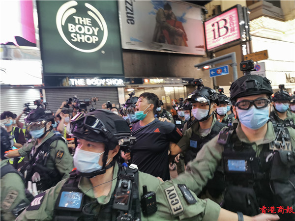 入夜後,有「示威者」繼續在各區聚集,警方因應各區情況嚴正執法,維護公共安全。截至晚上10時,多區共有至少86人被捕。其中74人包括4名區議員涉嫌於銅鑼灣區參與未經批准的集結;其餘被捕人分別涉嫌觸犯管有攻擊性武器,未能出示有效身份證明文件,管有偽造身份證,在公眾地方行為不檢和駕駛無牌車輛等罪行。此外,警方今日共票控20人涉嫌參與受禁群組聚集,違反《預防及控制疾病(禁止群組聚集)規例》。