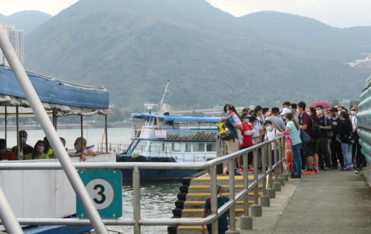 本港中秋、國慶假期一連兩天,港人出遊熾熱。馬料水碼頭往吉澳、荔枝窩人潮湧湧。因今日(2日)出遊人数太多,要開加班船。(