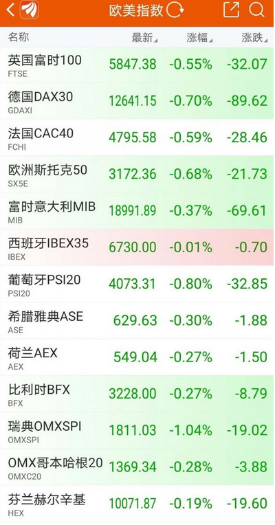 布伦特和WTI原油期货下跌。美、布原油期货跌幅扩大至2%,现报37.94美元/桶及40.09美元/桶。