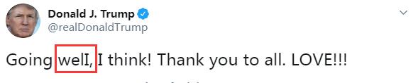 刚刚,美国总统特朗普在其个人社交媒体账号主页发布消息以示安好:「我觉得(一切)都好。谢谢你们所有人,爱(你们)!!!」