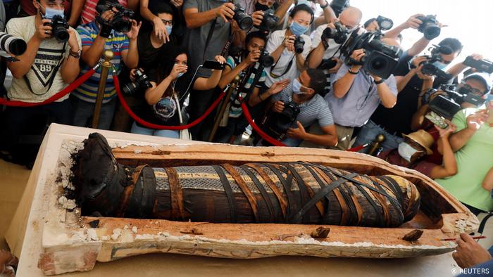 埃及考古隊在吉薩省墓穴發掘出59具約有2500年歷史的木棺。現場開啟的兩個木棺,完整保存著兩具木乃伊。旅遊和文物部長說,今次是塞加拉地區的重要考古發現,已出土的木棺保存完好,遺址還有未出土的木棺等待發掘,又表示考古隊初步判斷,這些木棺的主人是古埃及的祭司或官員。這些木棺埋藏在地下10米至12米,出土時完全密封,表面有彩繪。另外,考古隊又發掘到一些古埃及的神明雕像。