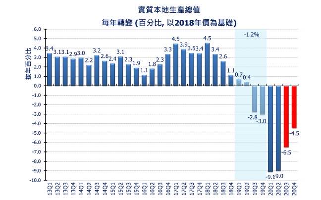 隨疫情減退及政府持續刺激經濟措施的支持下,預料跌幅將進一步收窄。今年第四季實質GDP預計按年下跌4.5%,失業率預料從今 年第三季估計的6.2%輕微惡化至第四季的6.4%。 預期香港今年全年經濟將收縮7.2%,比上次公布的全年預測下調1.7個百分點。