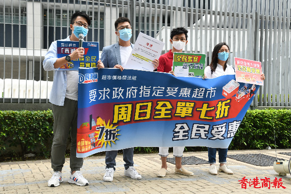 「超市價格關注組」建議政府應盡快修訂超市的回饋要求,並建議以「全單七折」作為最直接、簡單、有效率、市民支持且全民受惠的回饋方案。(记者 何加琪 摄影 蔡啟文)
