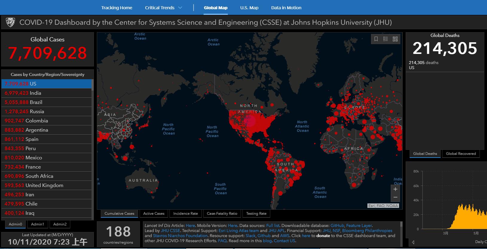 据美国约翰斯·霍普金斯大学新冠疫情统计数据,截至香港时间11日早7时30分左右,美国累计新冠肺炎感染病例达到7,709,628例,累计死亡病例达到214,305例。过去24小时,美国新增确诊病例55431例,新增死亡病例741例。美国已连续4天新增确诊超5万例。为此,美国传染病专家指出,全美多州正在面临疫情的再次暴发,还有一些专家警告称,伴随着冬季流感季节的到来,如果再不采取正确的预防措施,全美疫情形势将会变得更加严峻。
