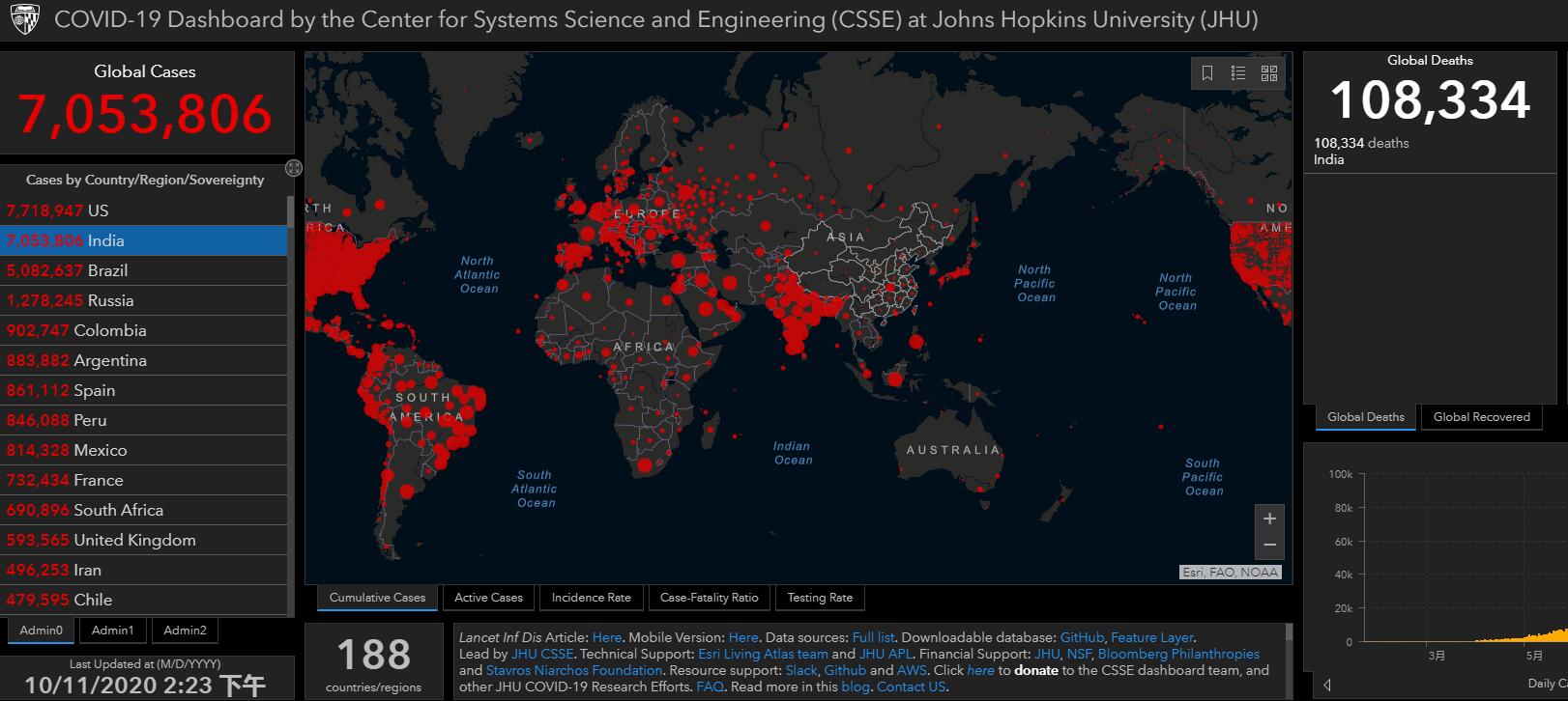 据报道,根据印度卫生部通报,过去24小时,印度新增7.4萬例新冠肺炎确诊病例,使印度累計確診突破700萬,增至逾705萬宗;新增死亡病例918例,累計108,334人不治。