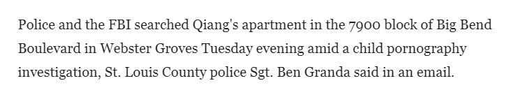 此前,据美国《圣路易斯邮报》9日消息,密苏里州韦伯斯特大学孔子学院中方代表刘强当地时间周二(6日)在被警方与美国联邦调查局(FBI)以涉儿童色情调查为由搜查其住所後死亡。