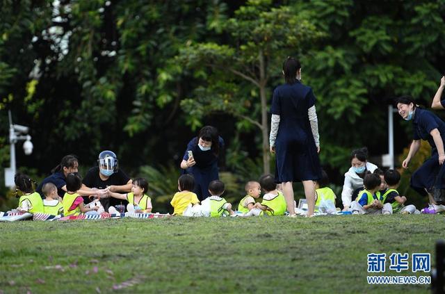 老師帶着孩子在深圳福田區的荔枝公園玩耍(9月22日攝)。新華社記者 毛思倩 攝