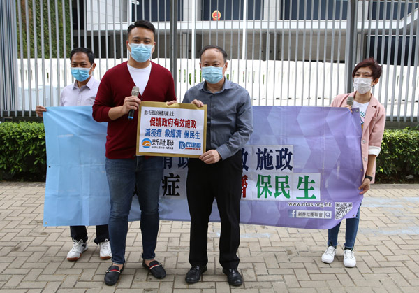 保民生與救經濟方面,新界社團聯會提出設立「失業援助金」,提供至少3個月的援助、再推新一輪抗疫措施,向全港市民派發不少於5千元的現金或特別消費劵及由政府帶頭並鼓勵各大公營機構開設更多臨時職位等建議。
