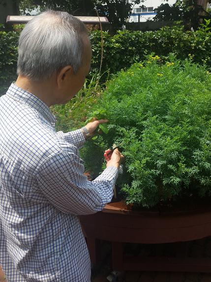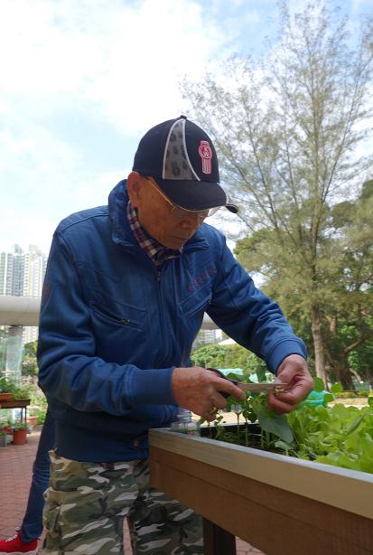 圖為參加者正在收割自己種植的意大利生菜即場品嚐,得到很大的喜悅及成功感。
