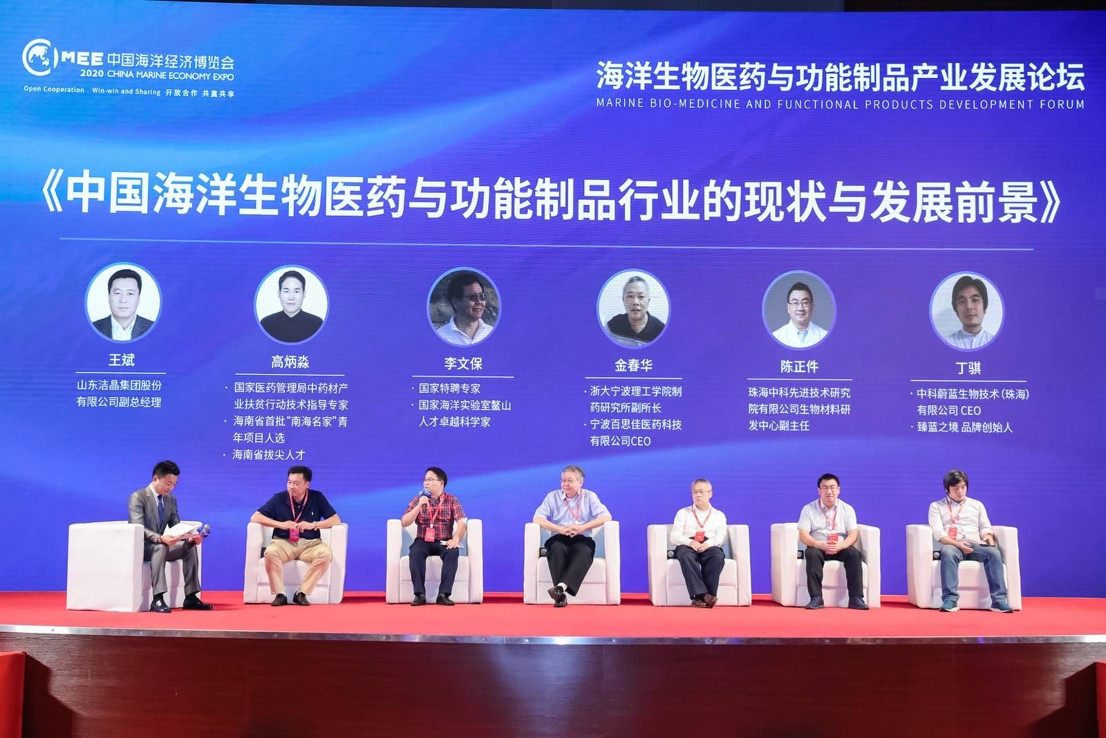 最後,海洋生物醫藥領域專家李文保、國家醫藥管理局中藥材產業扶貧行動技術指導專家高炳淼、浙大寧波理工學院製藥研究所副所長金春華、珠海中科先進技術研究院有限公司生物材料研發中心副主任陳正件、中科蔚藍生物技術有限公司 CEO丁騏等嘉賓,就「中國海洋生物醫藥與功能製品行業的現狀與發展前景」進行深入的圓桌對話。(記者 羅國淮)
