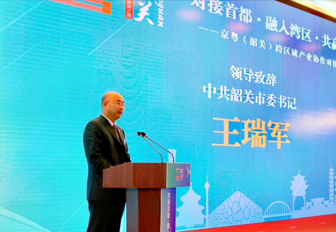 韶關市委書記王瑞軍在致辭中表示,韶關將抓住北京非首都功能疏解、粵港澳大灣區和深圳中國特色社會主義先行示範區建設等重大機遇,以差異化協同發展為着力點,加強與北京對接,實現雙贏發展。一是推進基礎設施提檔升級。加快韶關機場、北江航道和烏石港綜合樞紐建設,打造以構建高速公路、高速鐵路、航道、航空為主骨架的綜合交通運輸體系,拉近與京津冀地區的時空距離。二是讓綠水青山真正變成金山銀山。立足韶關資源稟賦優勢,打造以廣東南嶺國家公園為核心的自然保護地,及粵港澳大灣區的「後花園」「康養地」「體驗場」。三是抓好產業平台建設。積極清理盤活閒置低效用地,統一規劃建設產業園區,高標準做好產業佈局,讓企業進該進的園區,推進企業儘早落地開工,以最大的誠意、最優的服務全力為企業在韶關發展創造良好環境。四是打造公平公正的法治化營商環境。強化「數字政府」改革應用,多舉措降低水電氣租房成本,落實各項惠企政策,加大減稅降費力度,確保綜合營商成本不高於大灣區地區和同類地區。五是打造宜業宜居宜游現代化城市。加快推進城市品質提升, 增強城市綜合承載力、產業集聚能力和輻射帶動能力,優化政策環境、服務環境,讓企業得好處、得方便。