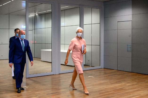 9月10日,在德國法蘭克福的歐洲中央銀行總部,歐洲央行行長拉加德(右)出席新聞發布會。新華社發(歐洲中央銀行供圖)