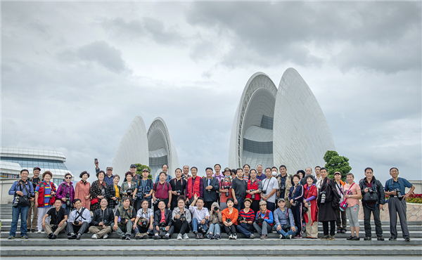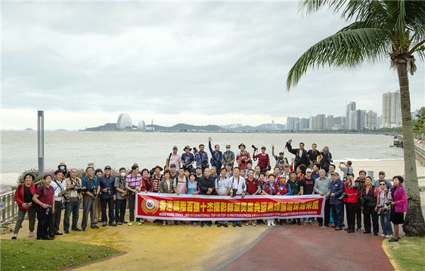 攝影師們在珠海大劇院採風合影。(陳偉標攝)