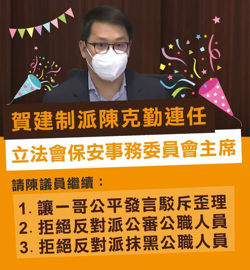 10月15日立法會保安事務委員會舉行主席選舉,由民建聯新界東立法會議員陳克勤勝選去擔任主席。