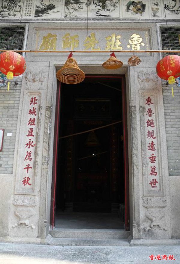 魯班先師廟又稱魯班廟,位於香港香港島中西區西環青蓮台15號,是香港島中唯一拜祭魯班的廟宇,現被列為香港一級歷史建築。廟宇建於清朝光緒10年,屬兩進式非合院建築物,供奉三行祖師魯班。廟宇設置多堵精巧護牆及大量雕刻塑像、浮雕及壁畫。其旁則建有廣悅堂公所,現被列為香港一級歷史建築。(蔡啟文攝)