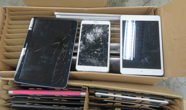 圖為環境保護署今年5月在香港國際機場截獲的其中4件非法進口的廢手提電話顯示屏。