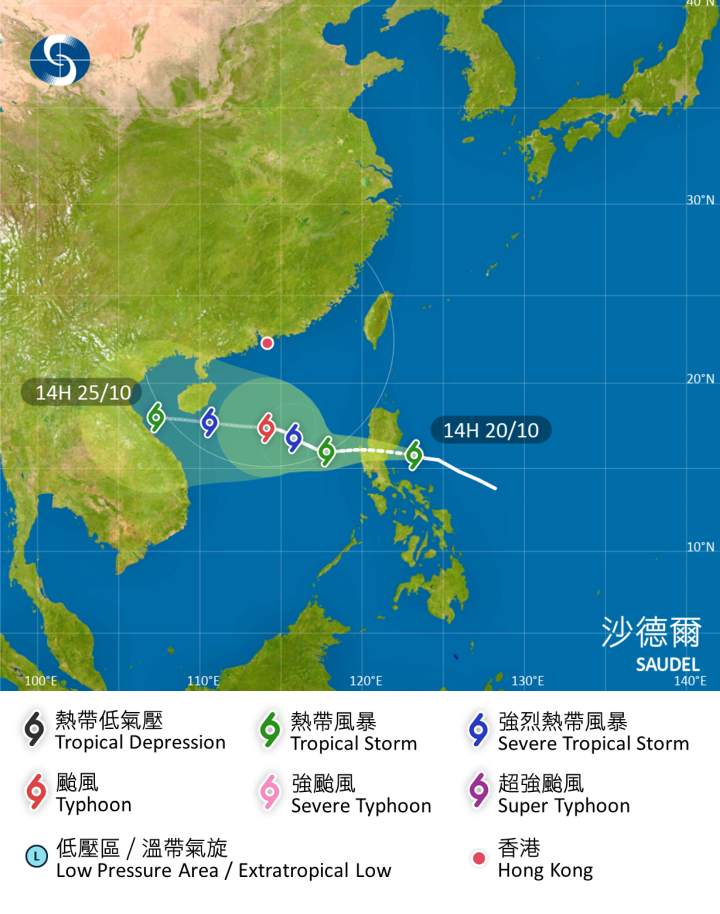 天文台預測沙德爾會在明日與香港保持一段距離。 圖:香港天文台