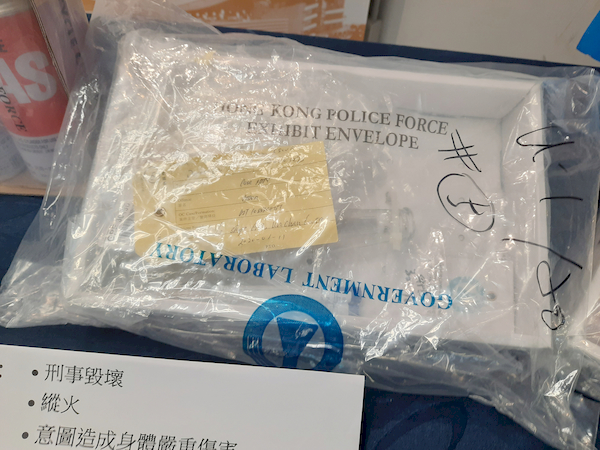 根據香港法例第200章《刑事罪行條例》,「意圖使身體受嚴重傷害而淋潑腐蝕性液體」和「縱火」罪,最高刑罰可判處終身監禁。(記者周偉立)
