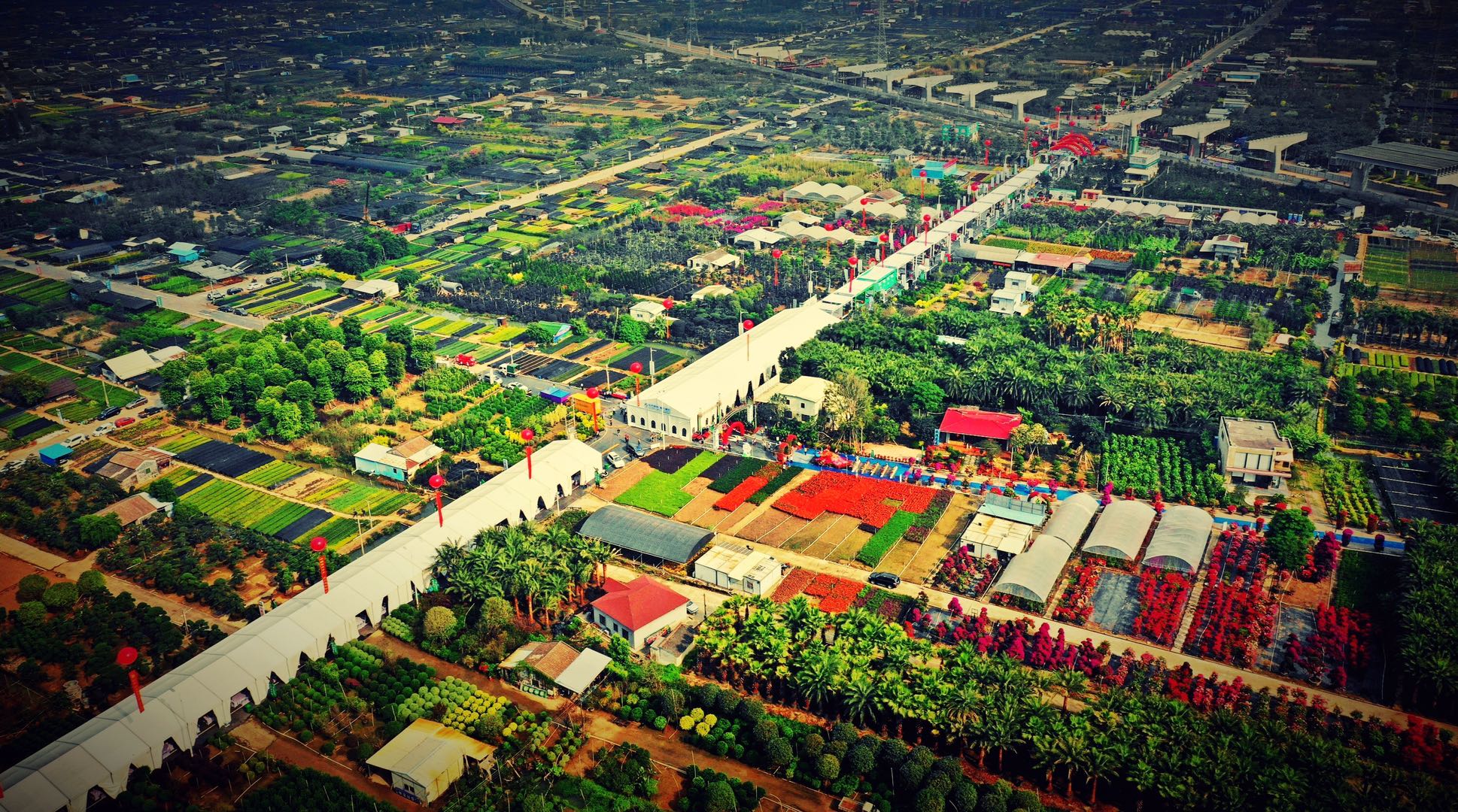 「中國花木之鄉」橫欄已建成面積達3萬畝產銷一體的花木基地(俯瞰圖)