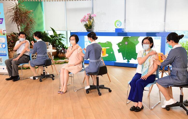 食物及衞生局局長陳肇始今日與衞生署署長陳漢儀聯同一眾前線醫護人員到葵青地區康健中心率先接種季節性流感疫苗,並呼籲高危人士盡快接種。