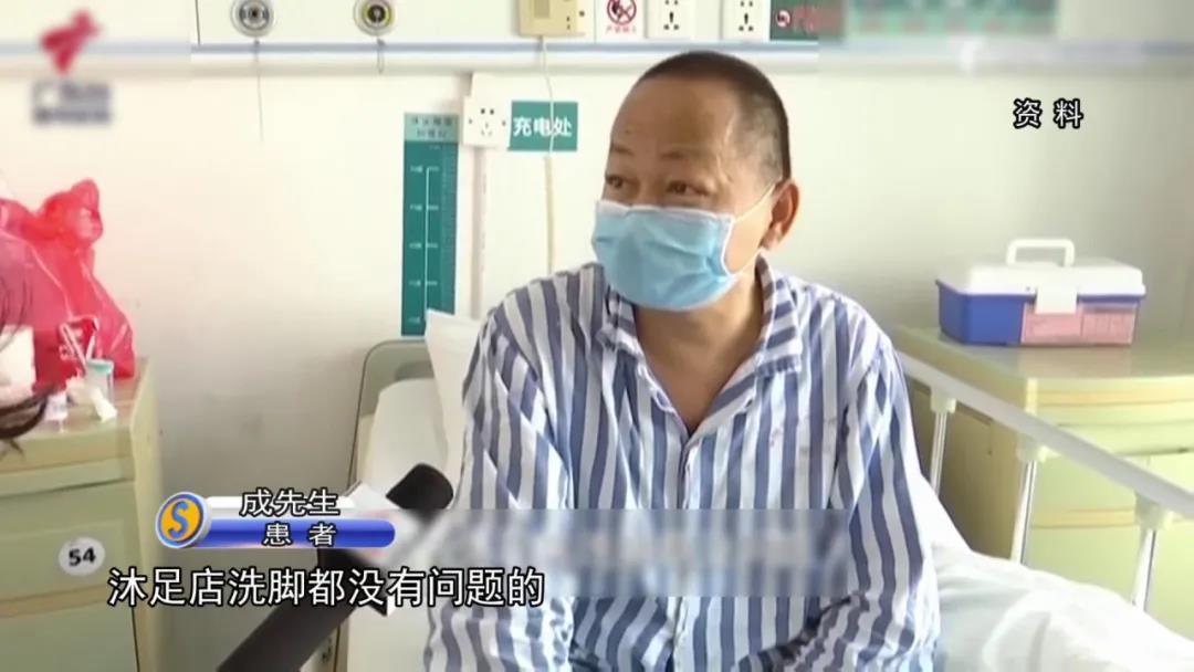 成先生:「當時我試了水溫感覺還可以,之前我也沒泡過,想着姜粉應該沒什麼問題,其實就是姜粉放到水裏泡,跟洗腳一樣,我糖尿病以前去沐足店洗腳也沒事,沒想到腳趾卻沒了一個。」